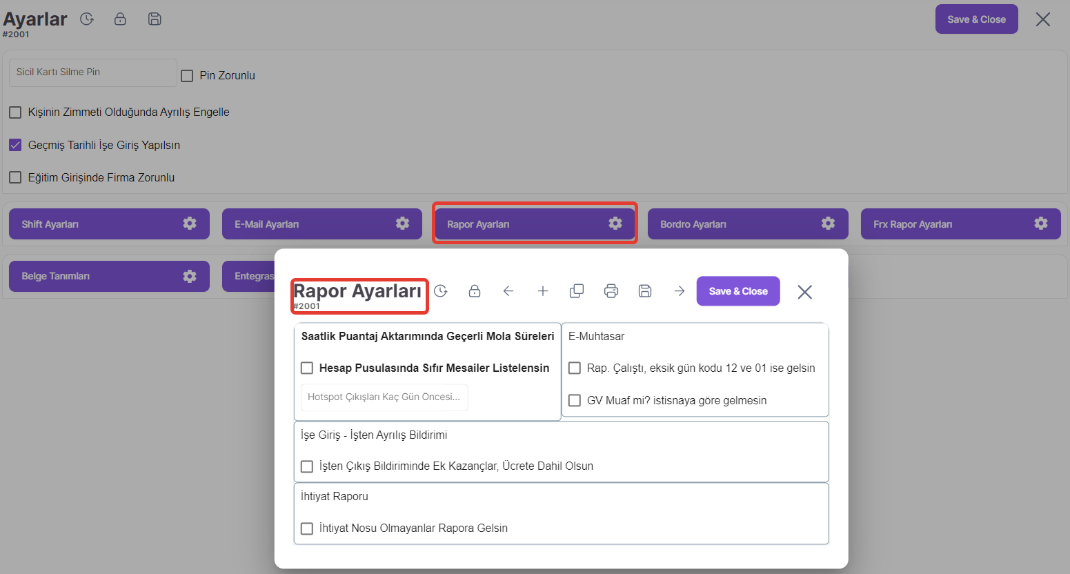 Rapor Ayarları