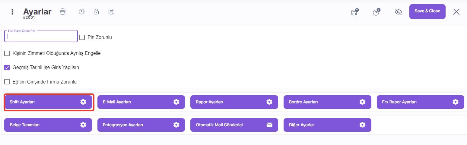 Shift Ayarları
