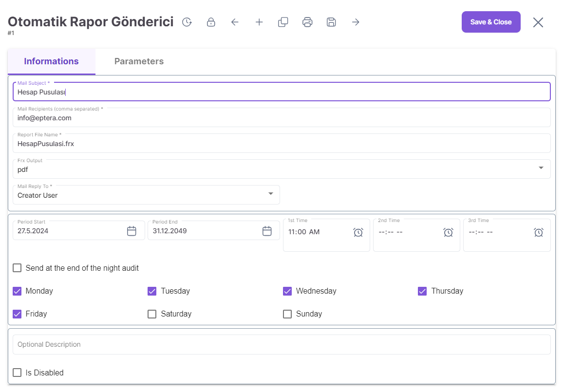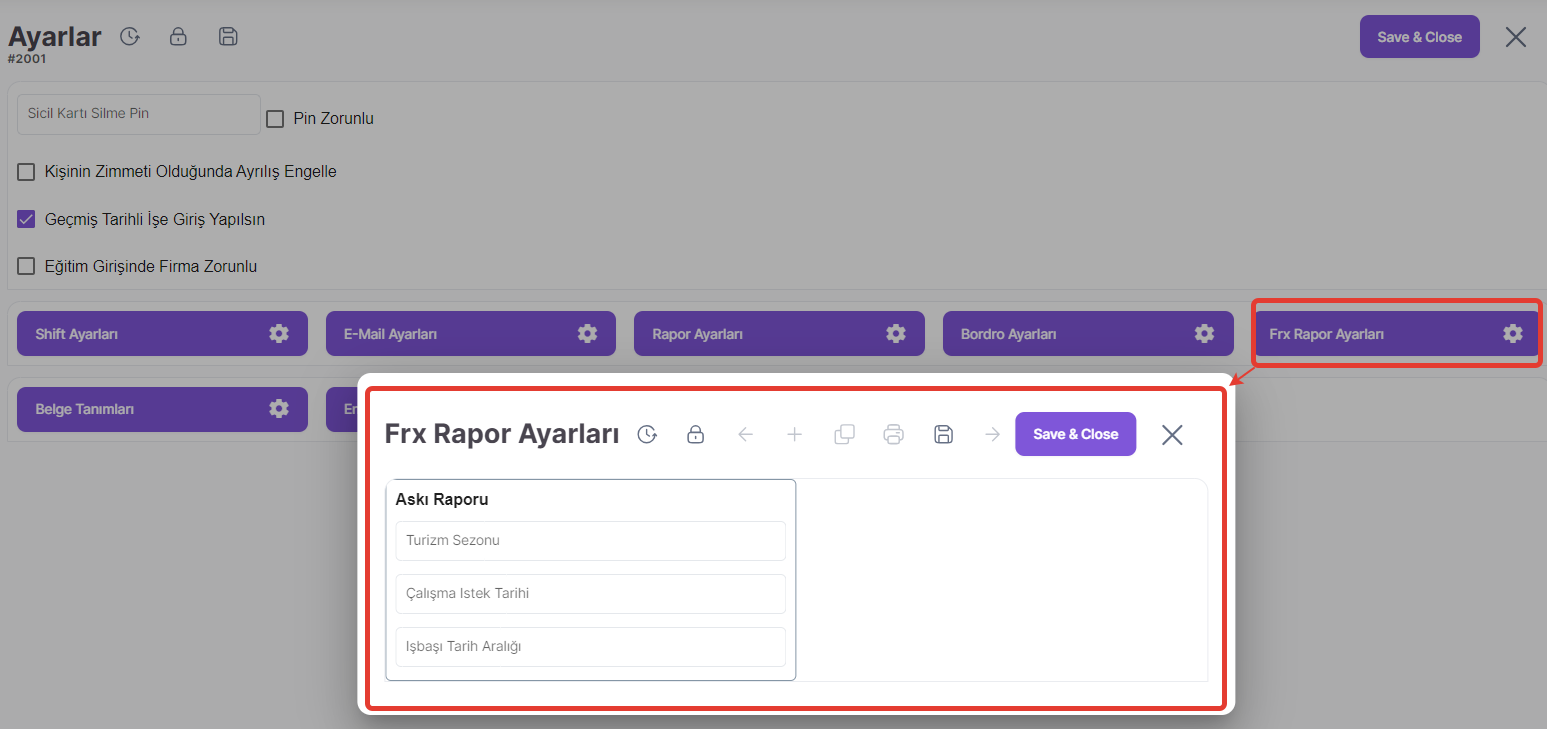 FRX Rapor Ayarları